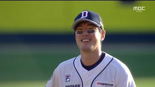 김재호 치명적인 실책으로 한점 헌납 / 7회초