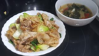 시래기 된장국과 대패삼겹살 청경채볶음 재생수 : 536